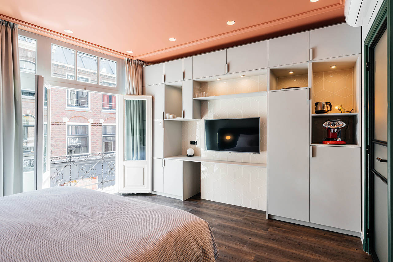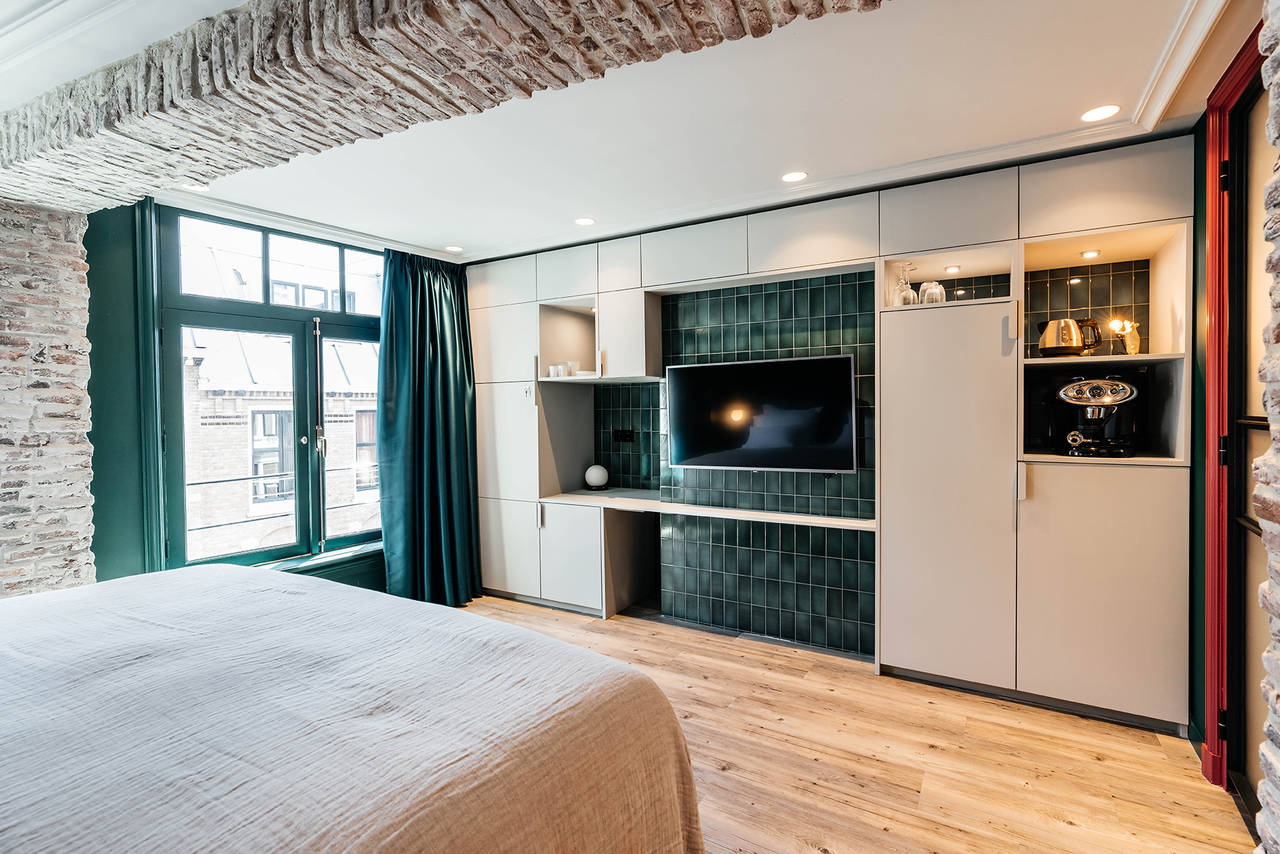 Op deze etage waan je je op de hoogte van de Dom en uiteraard zijn de kamers van alle comfort voorzien. Ze beschikken over een luxe king size tweepersoonsbed van Van Dyck, gratis wifi, airconditioning, een flatscreen tv met internationale kanalen, een haardroger, een regendouche, een rijkgevulde mini-bar, zachte badjassen, een Illy machine met koffie van Illy, thee-setup, een ruime laptop-kluis en enkele bijzondere verrassingen.